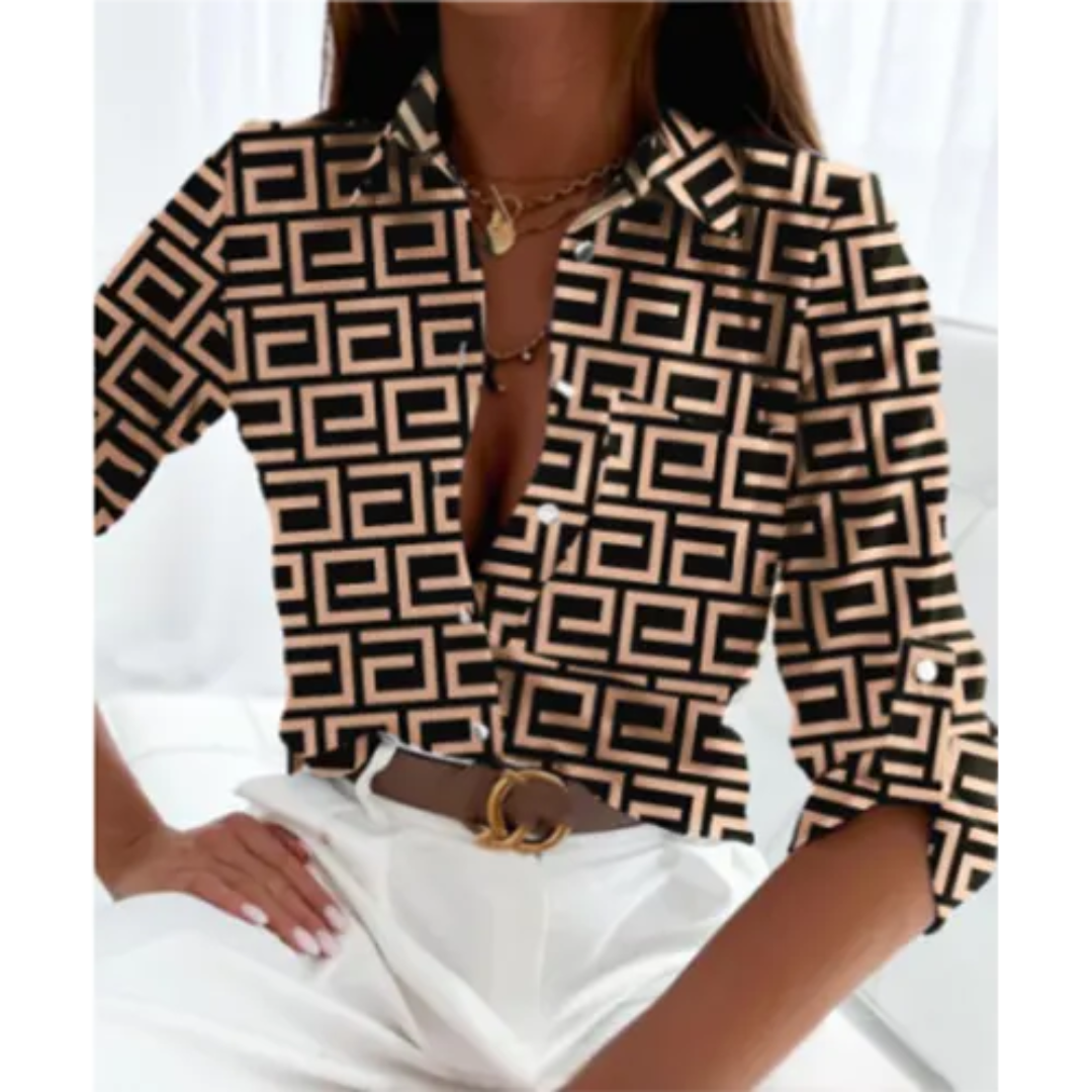 Cette chemise décontractée à manches longues et à boutons offre un style unique avec son imprimé tendance. Parfaite pour un look à la fois chic et décontracté, elle se porte facilement au quotidien. Son design polyvalent s'adapte à différentes occasions, vous permettant de rester élégante avec un confort absolu.