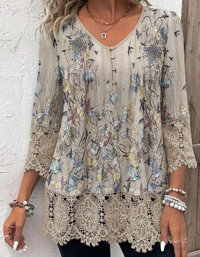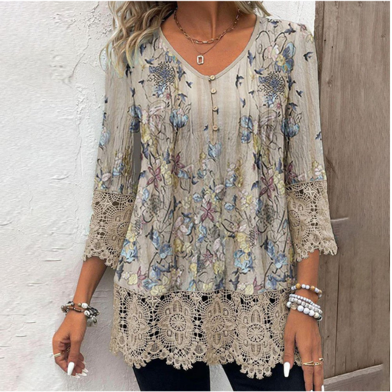 Découvrez le haut Sariyah, un modèle à manches longues dans une délicate teinte abricot, orné d'un imprimé saisissant, qui marie élégance et confort.