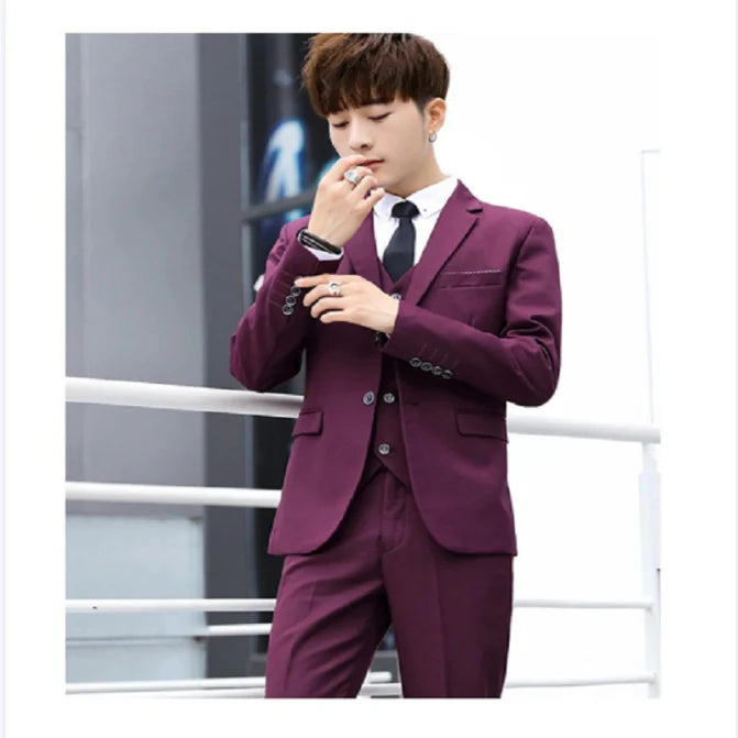 Ce costume trois pièces au style classique est spécialement pensé pour les invités de mariage qui recherchent une tenue formelle et soignée. Composé d’une veste, d’un gilet et d’un pantalon assortis, il se distingue par la présence de boutons de manchette, ajoutant une note de sophistication à l’ensemble. Sa coupe précise assure une apparence ordonnée et adaptée aux grandes occasions.