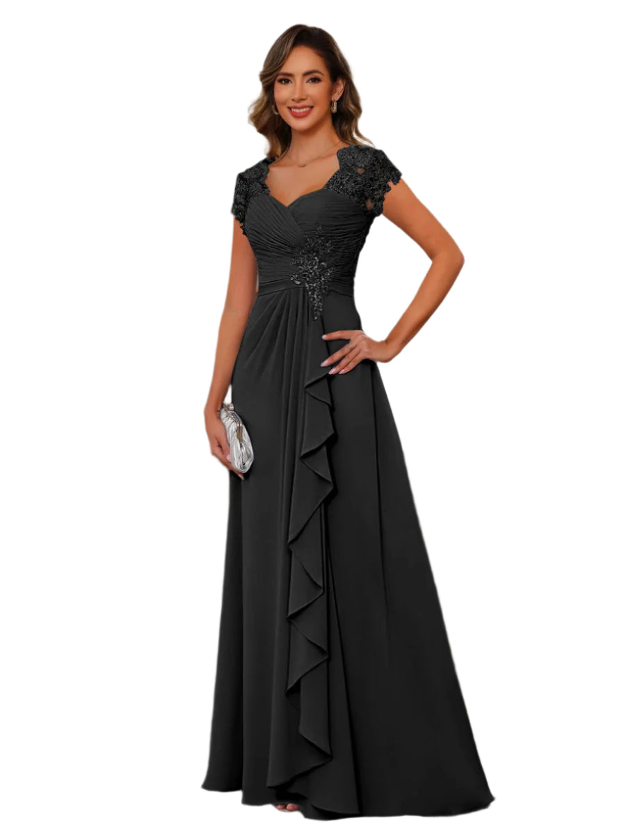 Cette robe de mariée pour invitée se distingue par ses manches courtes et ses volants qui ajoutent du mouvement à la silhouette. Sa coupe maxi en fait un choix idéal pour les mariages, réceptions et soirées habillées. Elle combine équilibre visuel et allure soignée pour marquer chaque événement important.