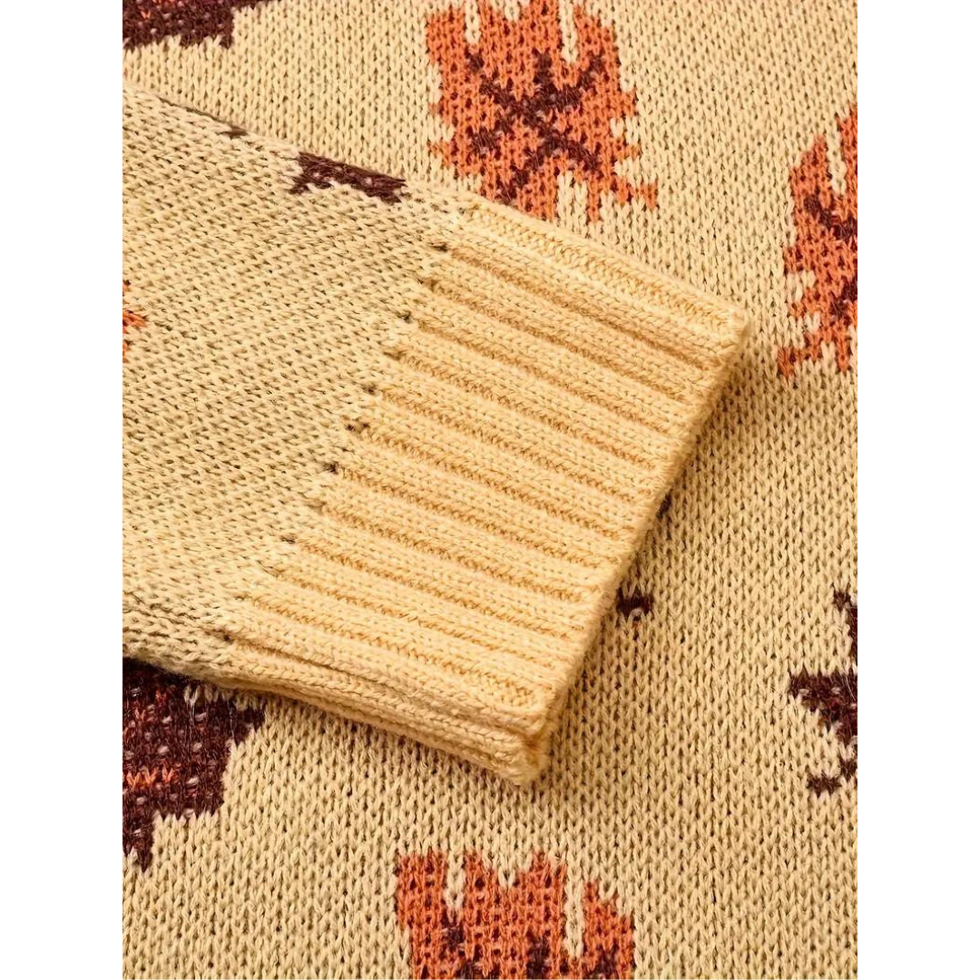 Bring a touch of nature and retro charm to your wardrobe with Dalila, a perfect sweater for the cold season. With its sophisticated leaf pattern and vintage cut, this long-sleeve sweater is designed to keep you warm while staying elegant.