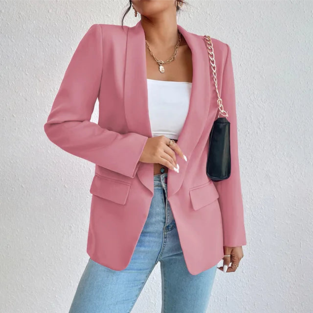 Discover Georgia, our carefully designed blazer, which perfectly combines classic sophistication with a contemporary touch. Made with high-quality materials, Georgia offers not only exceptional durability but also a comfortable fit that adapts to your silhouette. Its elegant design, enhanced by a tailored cut, allows you to make an impression on every occasion. Whether for a professional meeting or a casual outing, Isa adds a touch of class to all your outfits, making it a wardrobe essential. Enjoy the blend of style and functionality with Georgia, thoughtfully crafted to meet your expectations.
