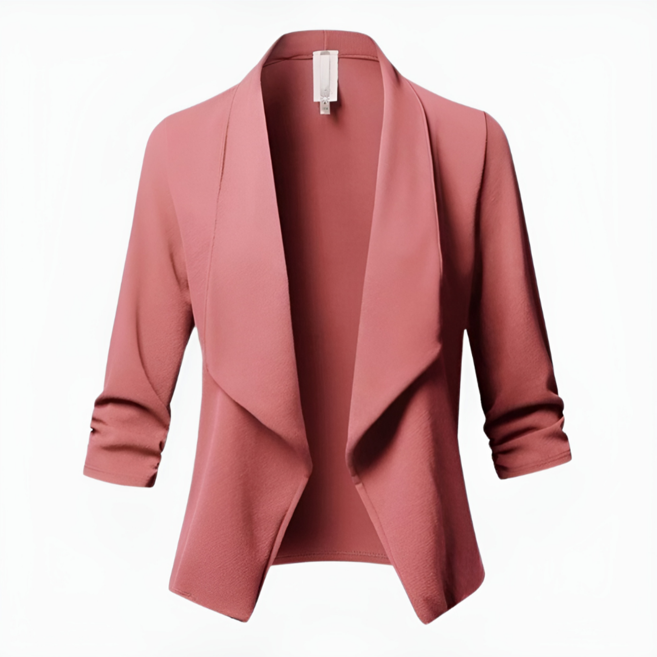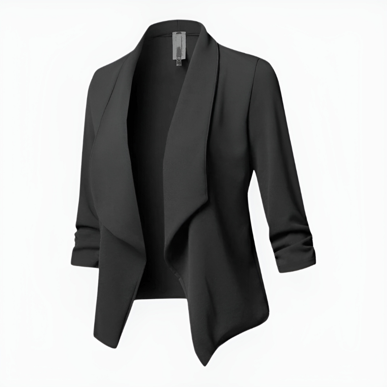 This blazer embodies elegance with its asymmetrical front and quarter-circle sleeves. Made from a high-quality polyester blend, it is both very comfortable and easy to style.