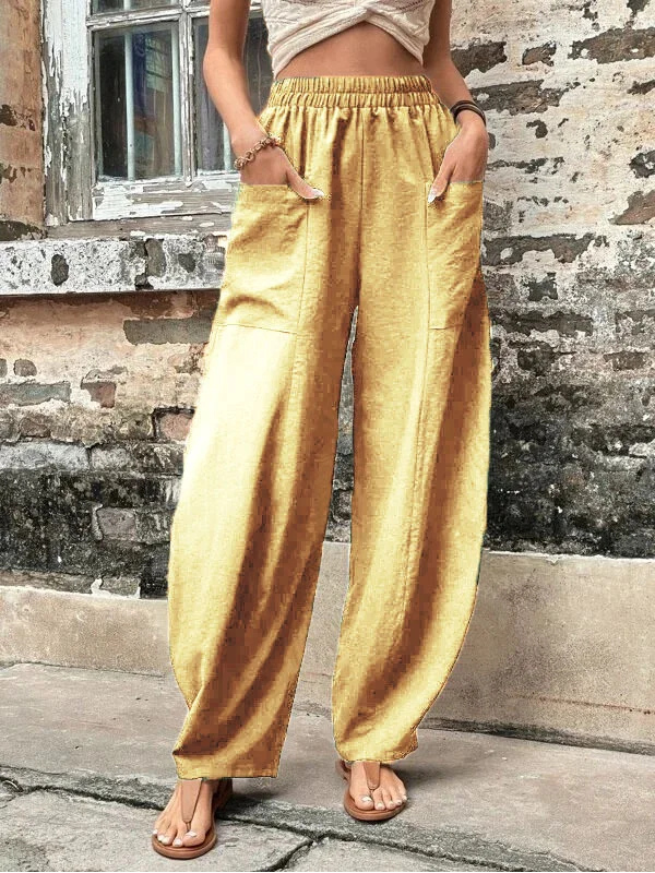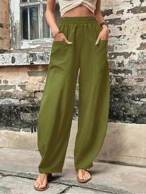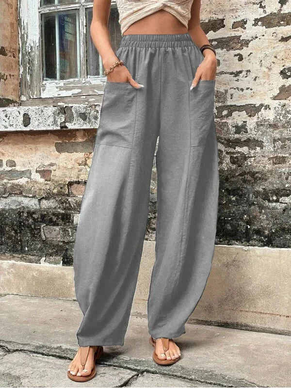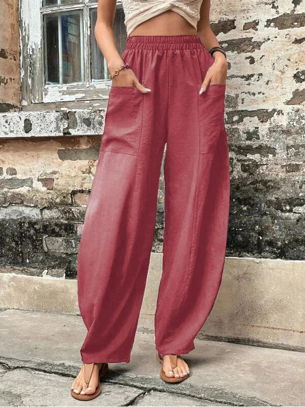 Discover the Keren pants, an essential piece that combines comfort and style. Ideal for all occasions, these solid-colored pants offer a flattering and practical fit thanks to their elastic waistband and functional pockets.