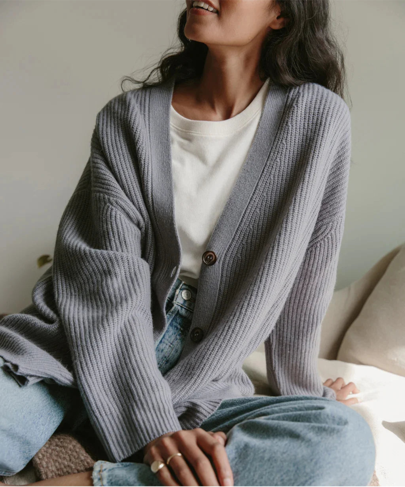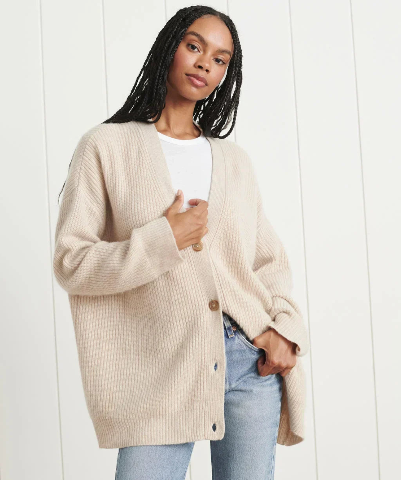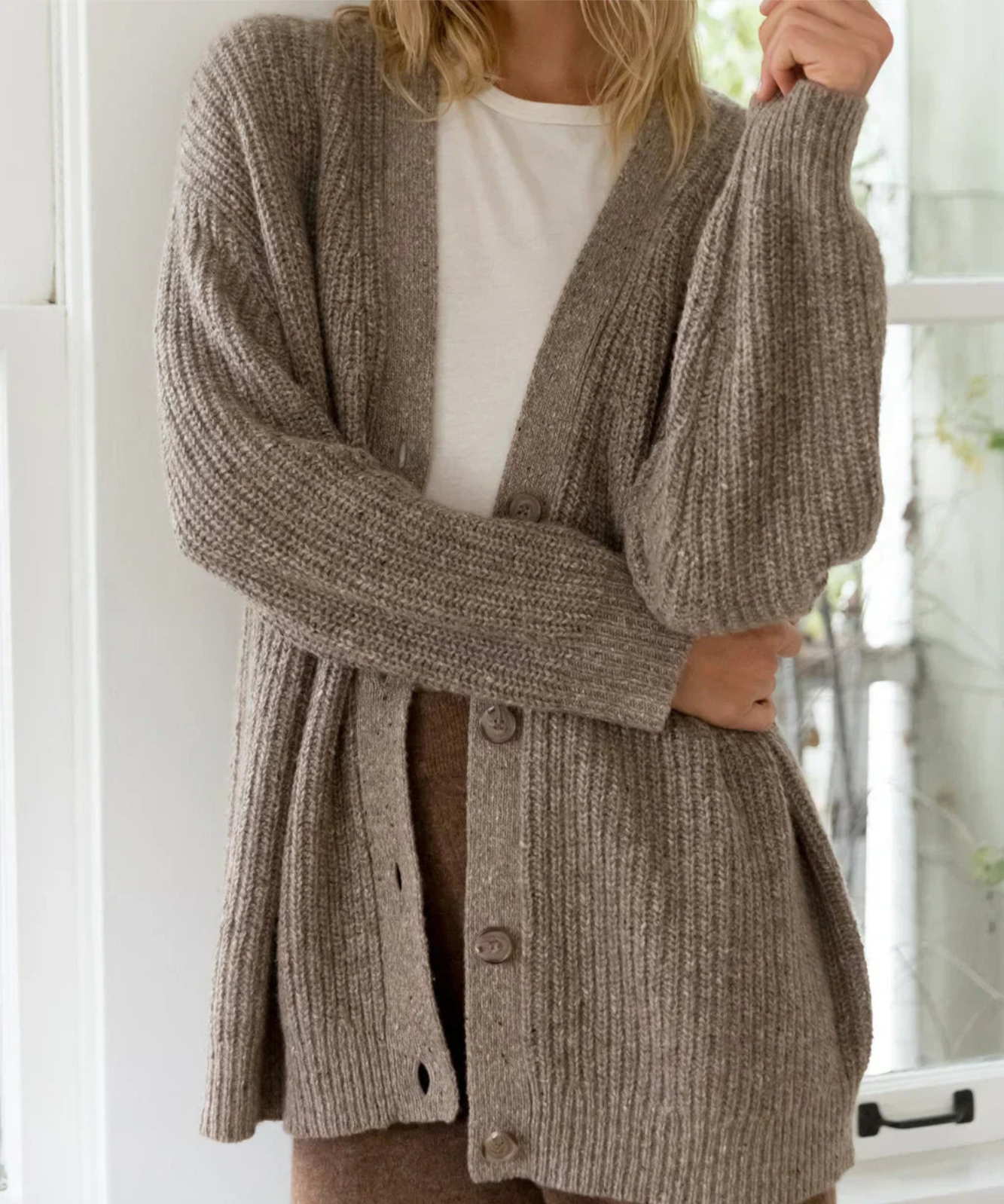 Simple yet elegant, this outerwear piece is a wardrobe essential. Our thin and lightweight cardigan can be worn from spring to winter, alone as a layering piece or under thick coats for extra warmth.