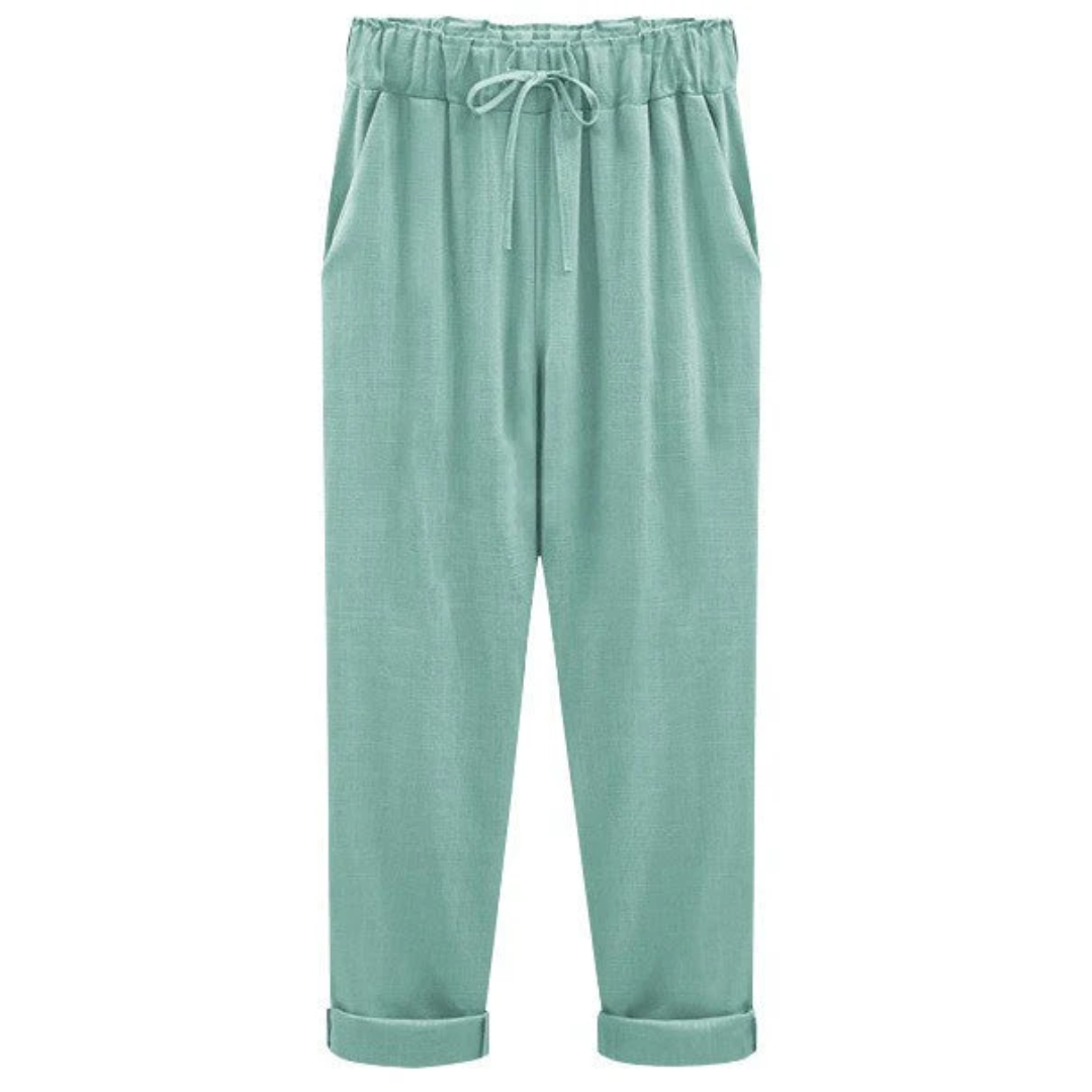 The Tonya summer pants for women embody style and comfort. Made from luxurious material, these pants will keep you cool and elegant throughout the season. With a relaxed fit, they effortlessly complement any summer wardrobe.