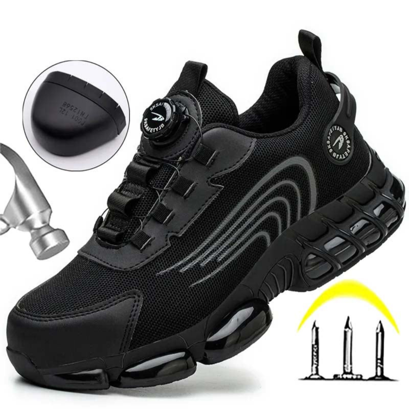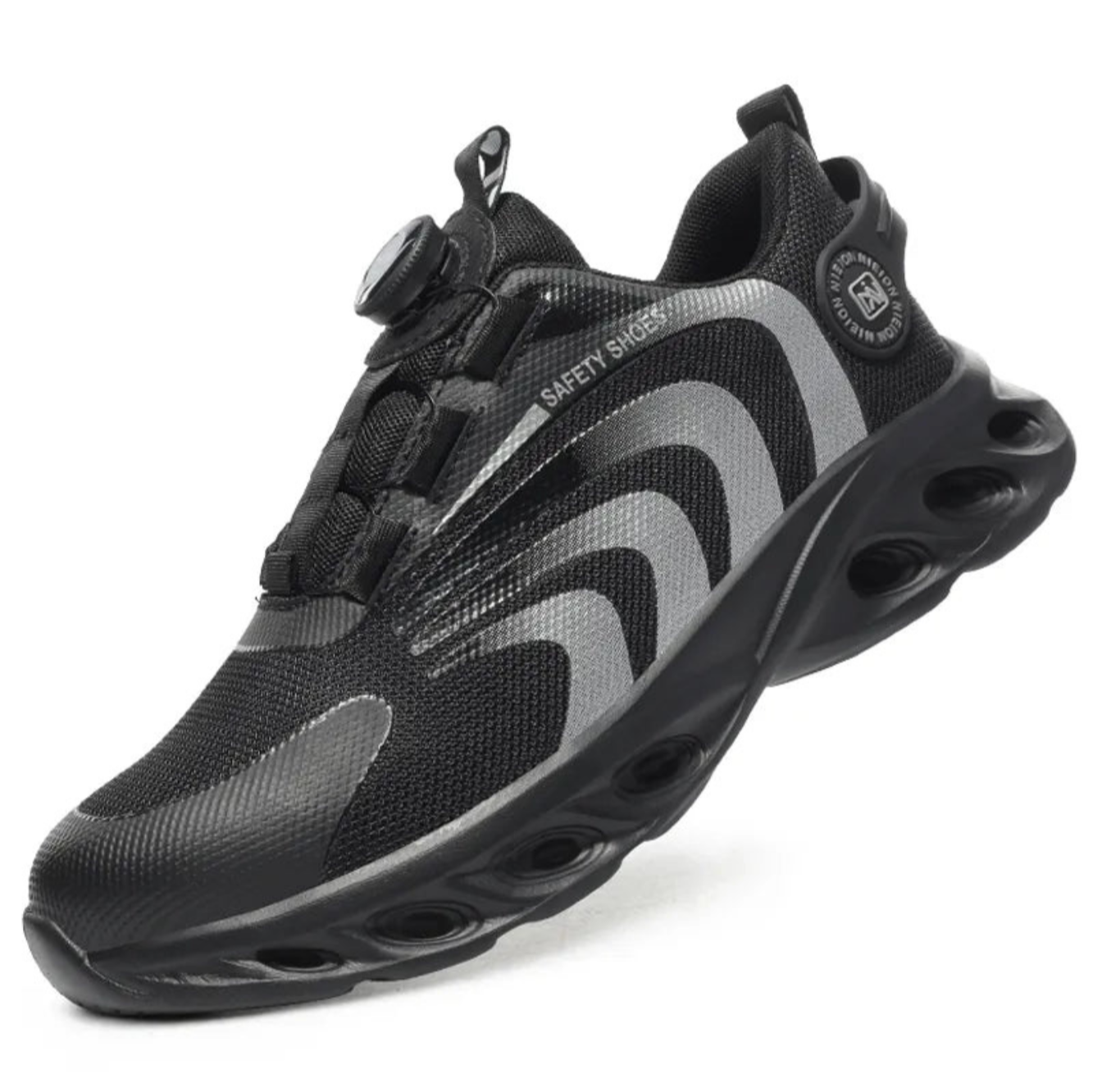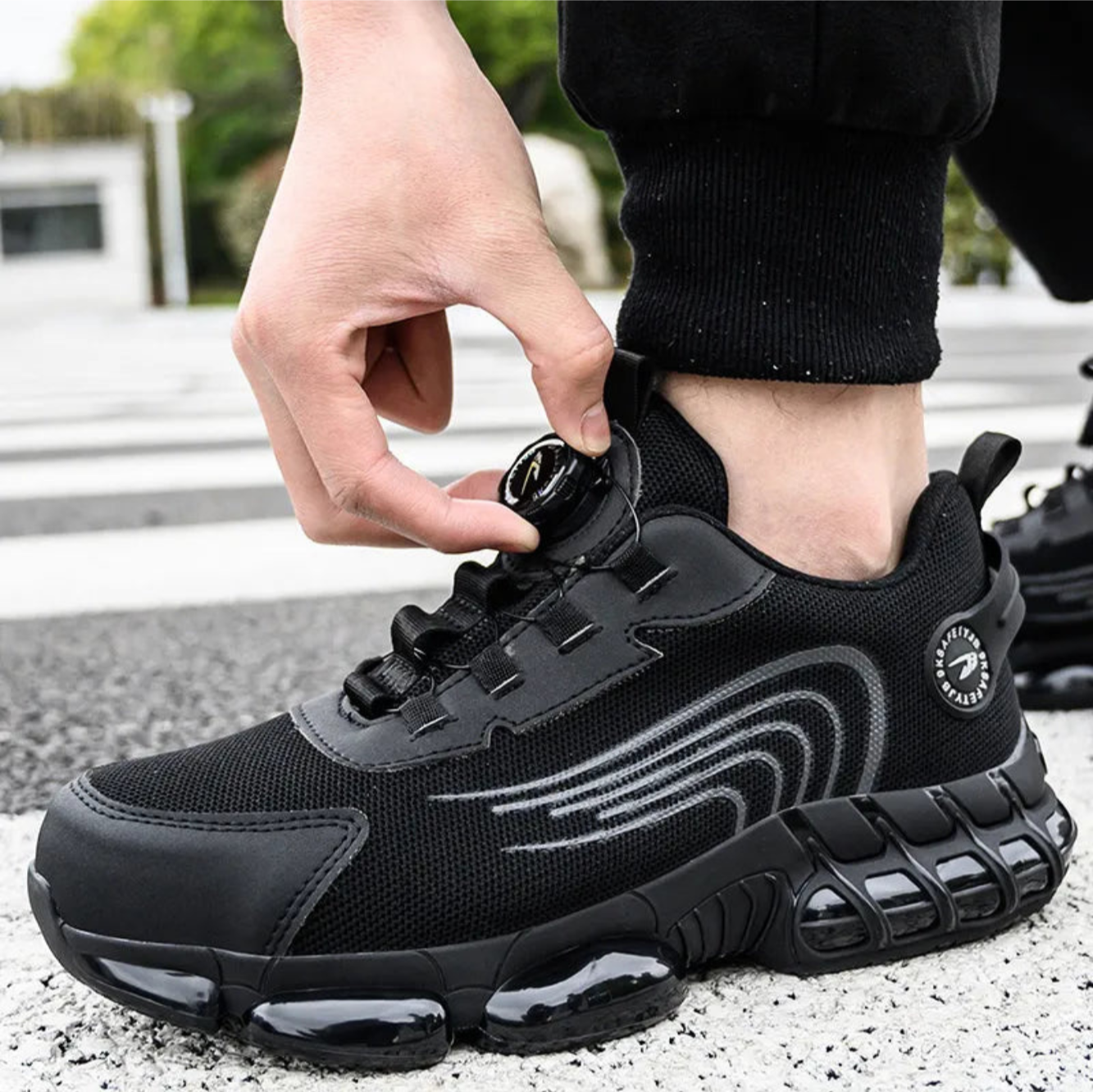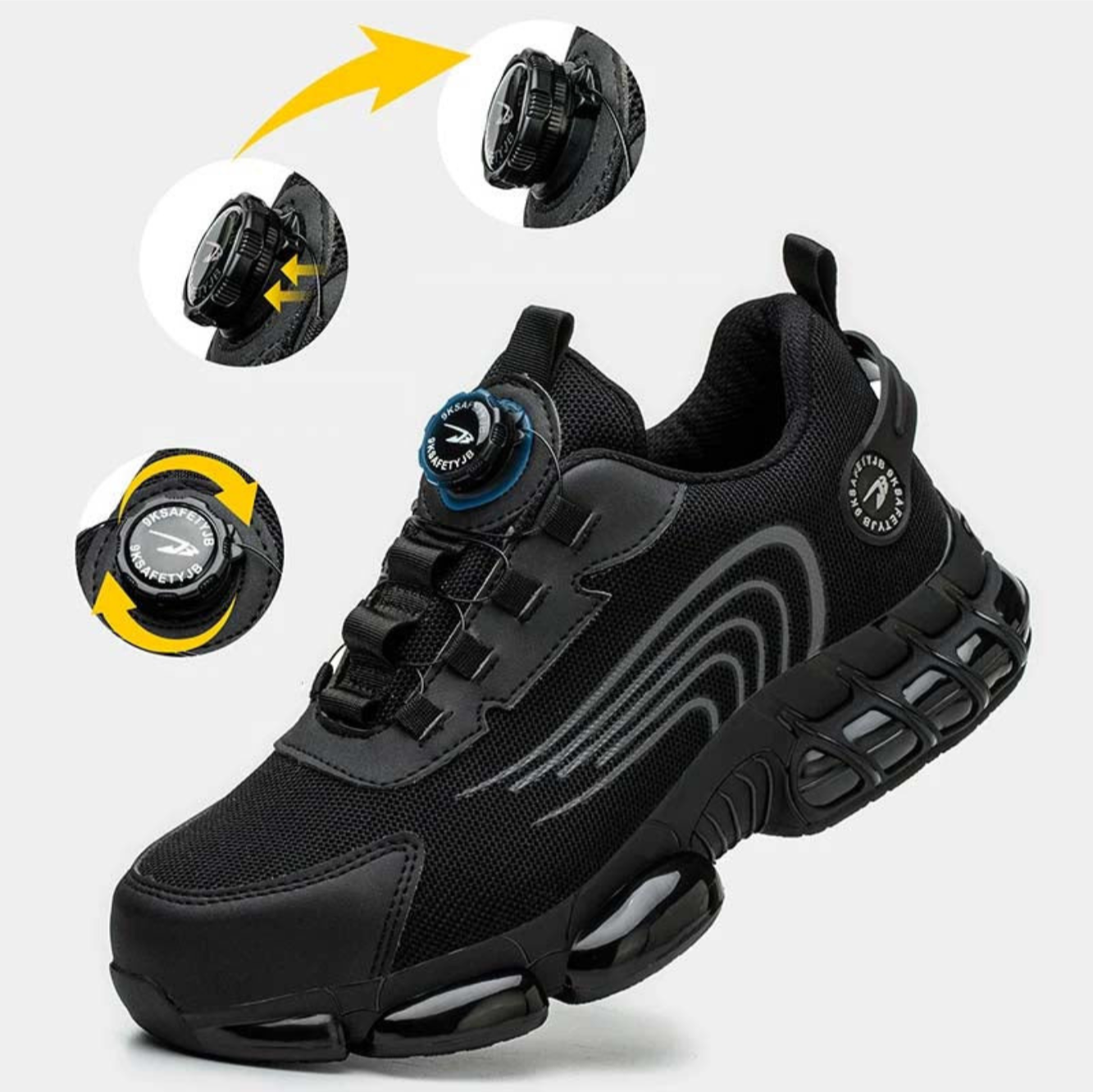 Safety shoes with rotary button closure. Choose uncompromising protection with our men's safety shoes.