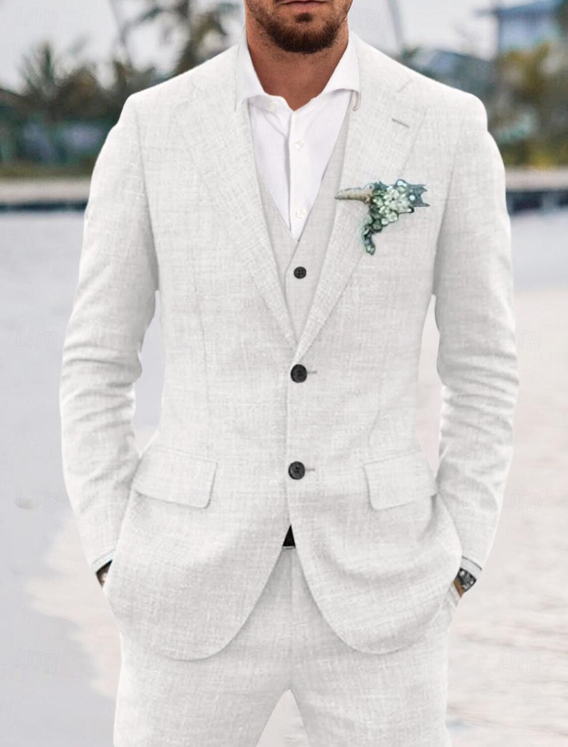 Three-piece set: Includes matching jacket, vest, and trousers for a complete look.