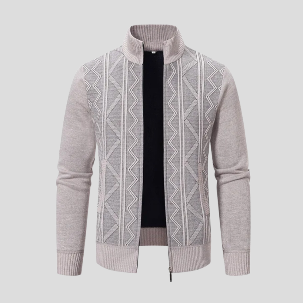 Discover Ethan, the high-quality wool cardigan that combines softness, warmth, and timeless style. With its refined geometric pattern and meticulous finishes, it becomes a must-have to face cool days with elegance.