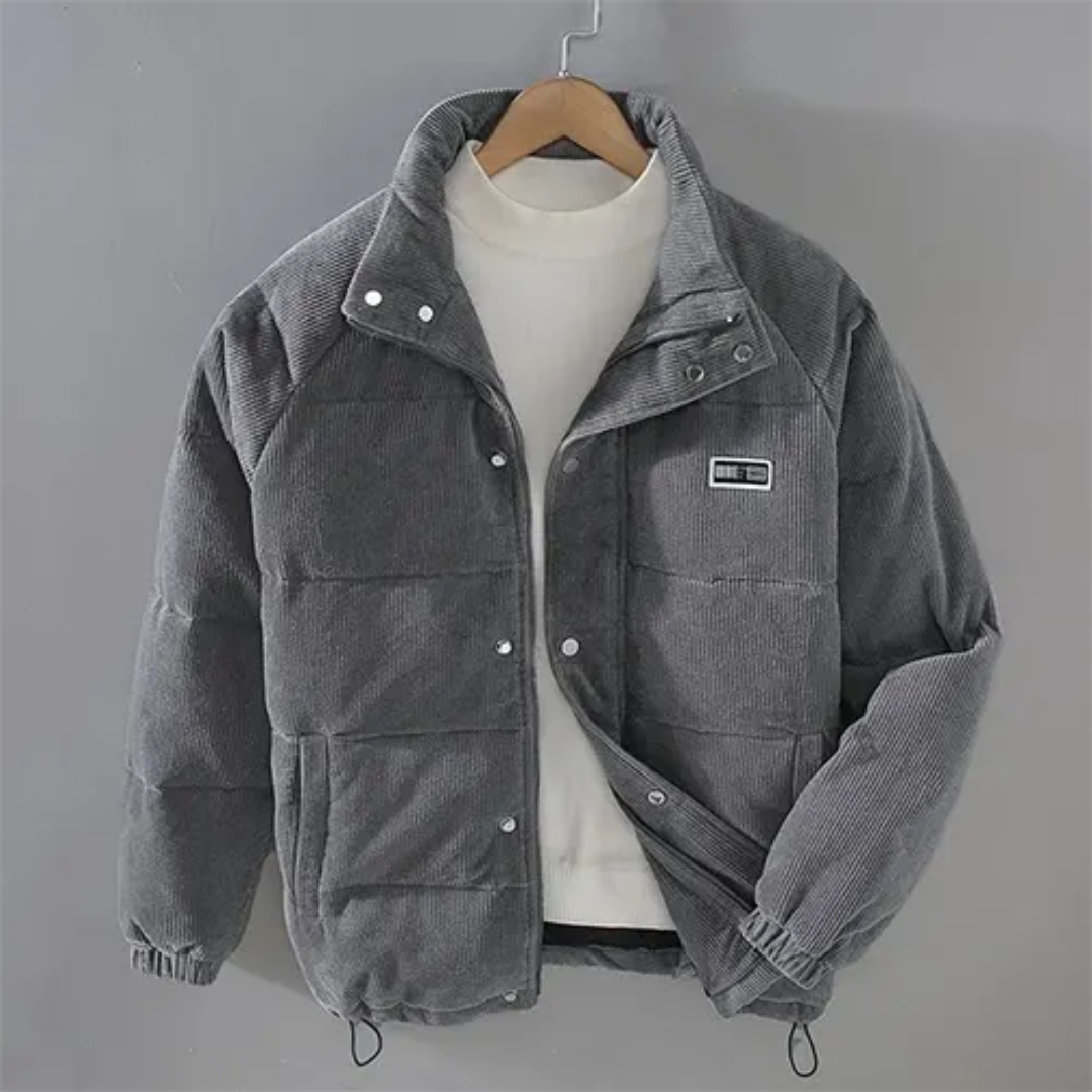 This men's corduroy winter jacket with buttons offers a casual style while ensuring warmth and comfort. Its classic button design adds an elegant touch to a casual outfit, while the corduroy provides a unique texture and refined look. Perfect for cold days, this jacket combines timeless style and practical functionality.