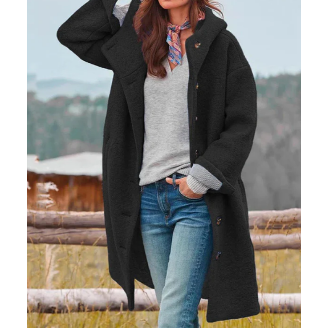 This thick women's long winter coat is designed to offer you timeless elegance while protecting you from the cold. Its sophisticated cut highlights the silhouette and adds a refined touch to all your outfits. Ideal for facing winter in style, it suits all occasions, from everyday wear to the most dressed-up outings.