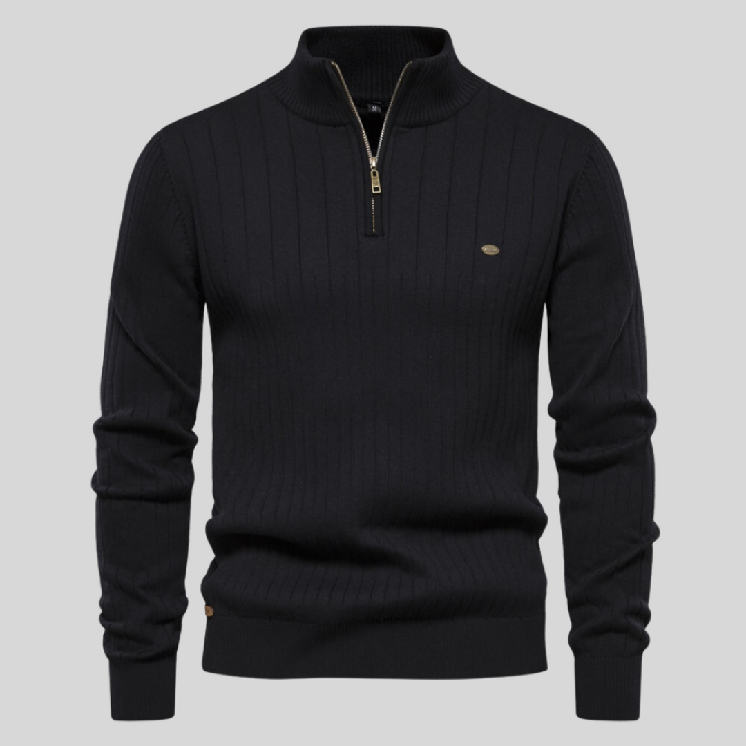 Add a touch of refinement to your wardrobe with the Brett sweater, designed to combine sophistication and comfort. Its ribbed knit design and functional zipper make it an essential piece for the modern man, ideal for cool days or elegant evenings.