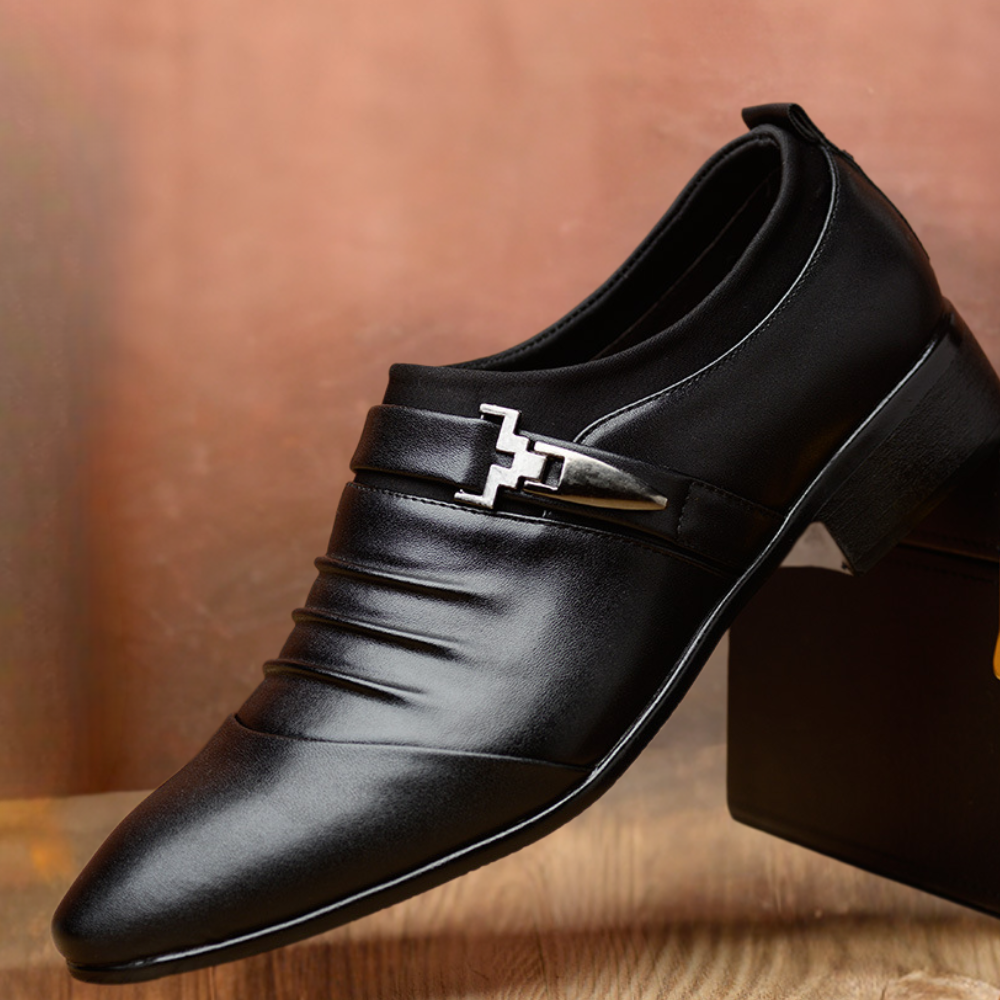 These men's shoes are designed to accompany a formal outfit at a wedding. Their design combines a pointed toe with a rounded finish, offering a neat look suitable for ceremonies. Ideal for a guest, they add a polished touch to special occasions.