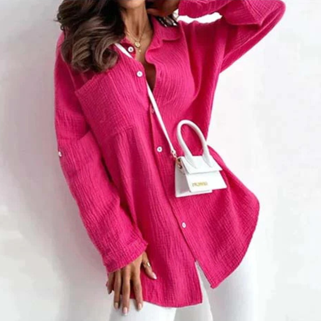 This oversized summer shirt combines lightness and modernity for a look that is both trendy and comfortable. With its loose fit and hand-buttoned design, it is ideal for a casual style while remaining elegant. Perfect to wear open over a tank top or closed for a more sophisticated look, it adapts to all your summer outfits.