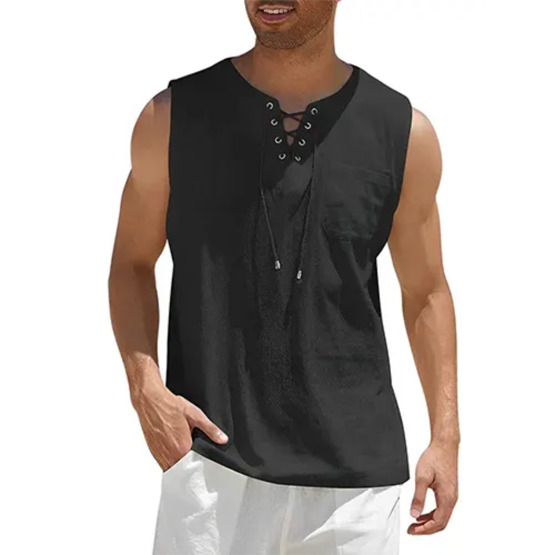 Men's Sleeveless Lace-Up Tank Top | Casual