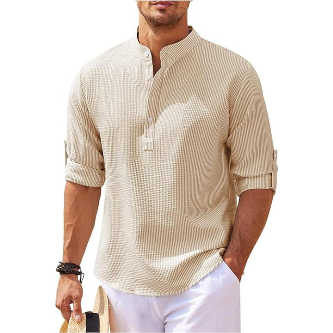 Buttoned Henley collar: Adds a touch of originality and elegance.