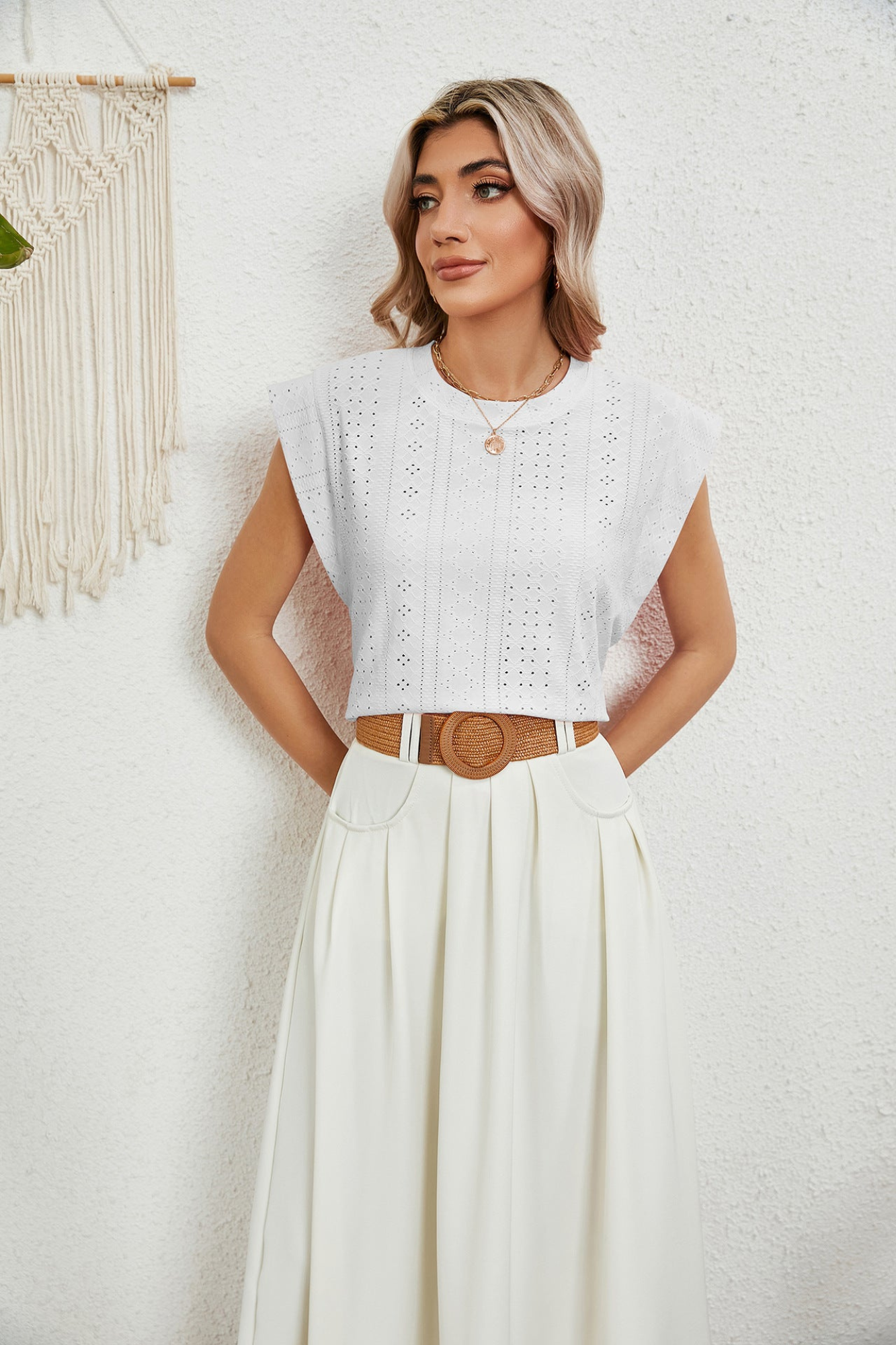 Discover the summer style with the Tamara, short-sleeved hollow t-shirt. This light and openwork t-shirt is perfect for hot days.