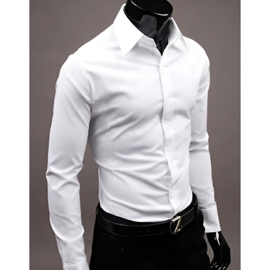 Cette chemise habillée à manches longues et coupe slim est parfaite pour un look sophistiqué et moderne. Son design ajusté met en valeur la silhouette tout en assurant un confort optimal. Avec sa fermeture boutonnée, elle s’adapte aussi bien aux tenues professionnelles qu’aux événements formels.