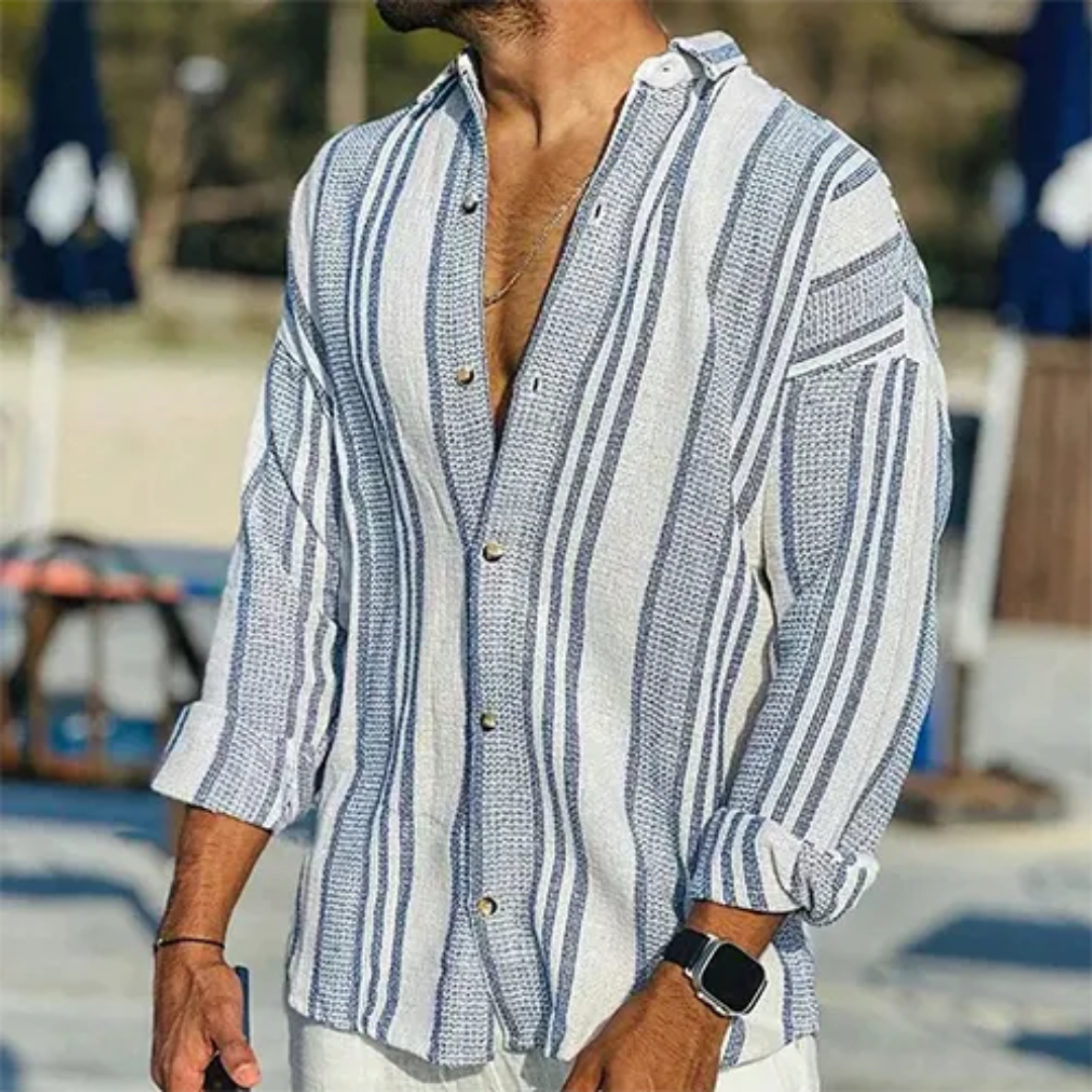 Hommes Chemise Boutonnée Décontractée À Rayures | Manches Longues