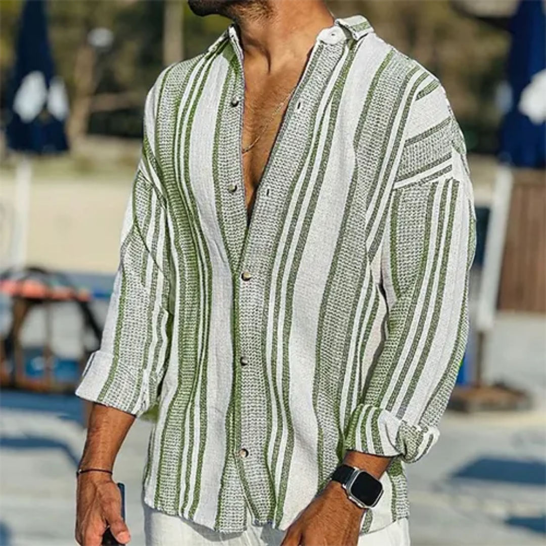 Cette chemise boutonnée à rayures est l'équilibre parfait entre élégance et décontraction. Son design intemporel et sa coupe confortable en font un choix idéal pour toutes les occasions. Facile à assortir, elle s’adapte aussi bien à un pantalon habillé qu’à un jean pour un look plus décontracté.